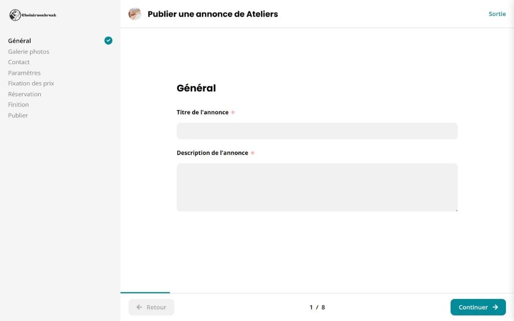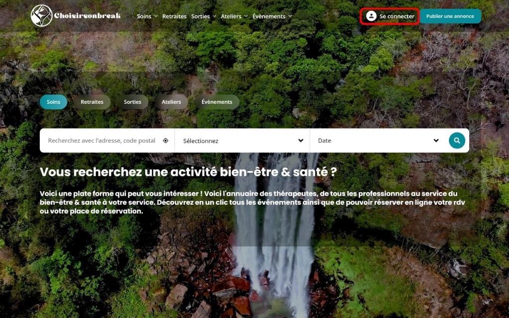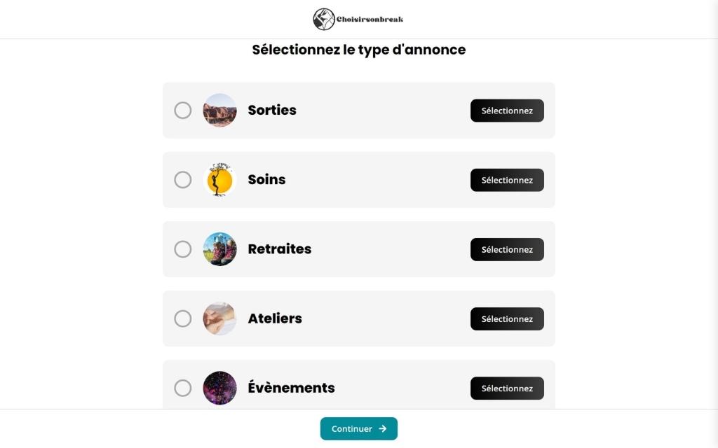 1 – Cliquer sur le type d’annonce de votre choix (Sorties, Soins, Retraites, Ateliers, Évènement)