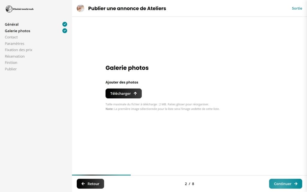3 – Ajouter vos photos, attention la photo ne doit pas dépasser 2 MO