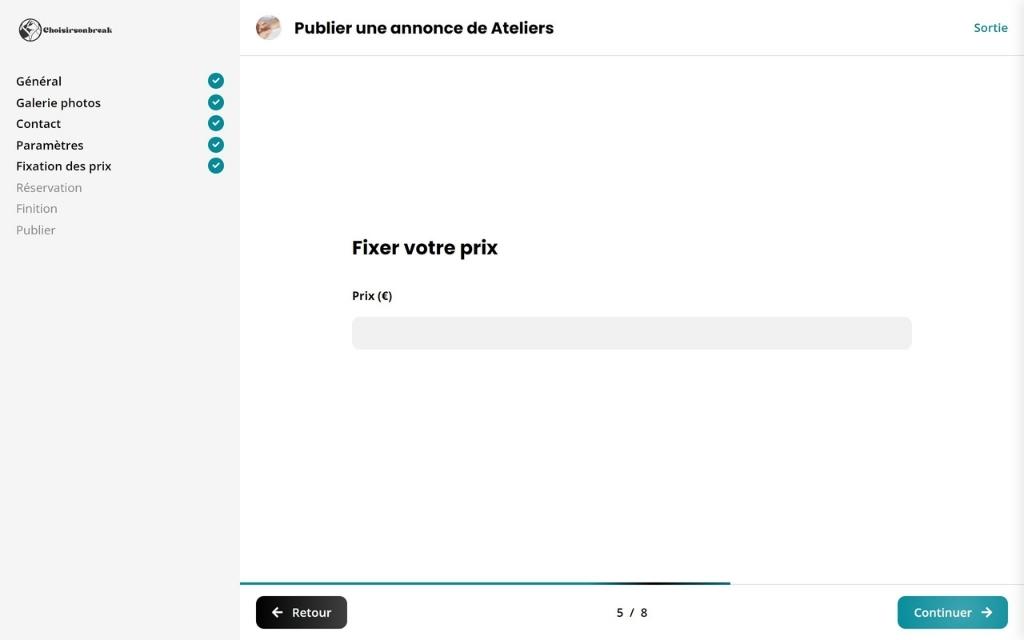 6 – Remplissez le champ Prix en y renseignant votre prix de base pour la prestation
