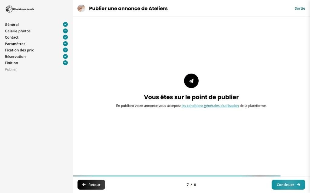 8 – Cliquez sur Continuer pour valider les conditions générales de la plateforme