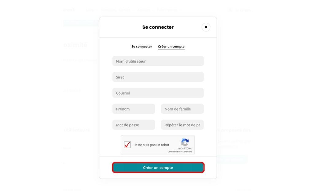 4 – Remplir les champs d’information. (Le numéro de SIRET doit être valide)