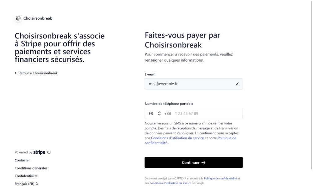 En cliquant sur le bouton Publiez une annonce vous allez arriver sur la page de création de votre compte Stripe Connect.